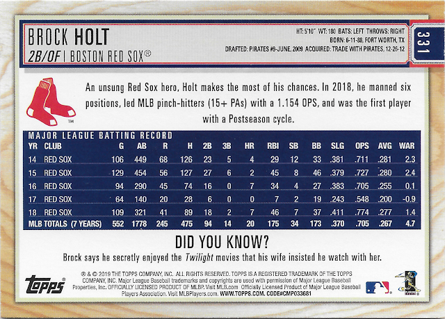 Larry Sorensen played until 1988, says one part of the card back, while another bit suggests he retired in 1987. Not the Greatest moment for Swell Card Back Writer. Fantastic Powder Blue flashback, surely. But I'm starting to get creepy 21st century Topps vibes with the mix of journeymen and Inner Circlers, though Topps does that with 11 game Rookies, not 11 year veterans like Sorensen. I will definitely be bindering up this set in order of date of player retirement, not card #, that I can tell you. It's the only way I can handle Hall of Famers mixing with commons.
